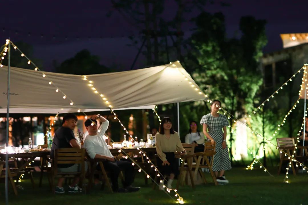 夏夜,褪去了白晝里熾陽烘烤的炙熱,召喚著在空調(diào)房里泡了一天的身體,接受自然的照拂。從湖畔吹來的風會喚醒每一個毛孔,讓身心得以放松舒展,輕盈自在。夜幕降臨的星野營地上,草坪夏夜的快樂在銀杏林旁開啟,晚風、星空、燒烤、音樂、煙火......人們可以在如水的夜晚里拋掉一切擾人瑣事,專注于炭火上烤物的滋味,敞開心扉,把酒言歡,哼著曲調(diào)跟著音樂節(jié)拍搖擺,等綻放的煙花把歡樂氣氛推至高潮,沉醉一場美妙無比的微醺夏夜時光。