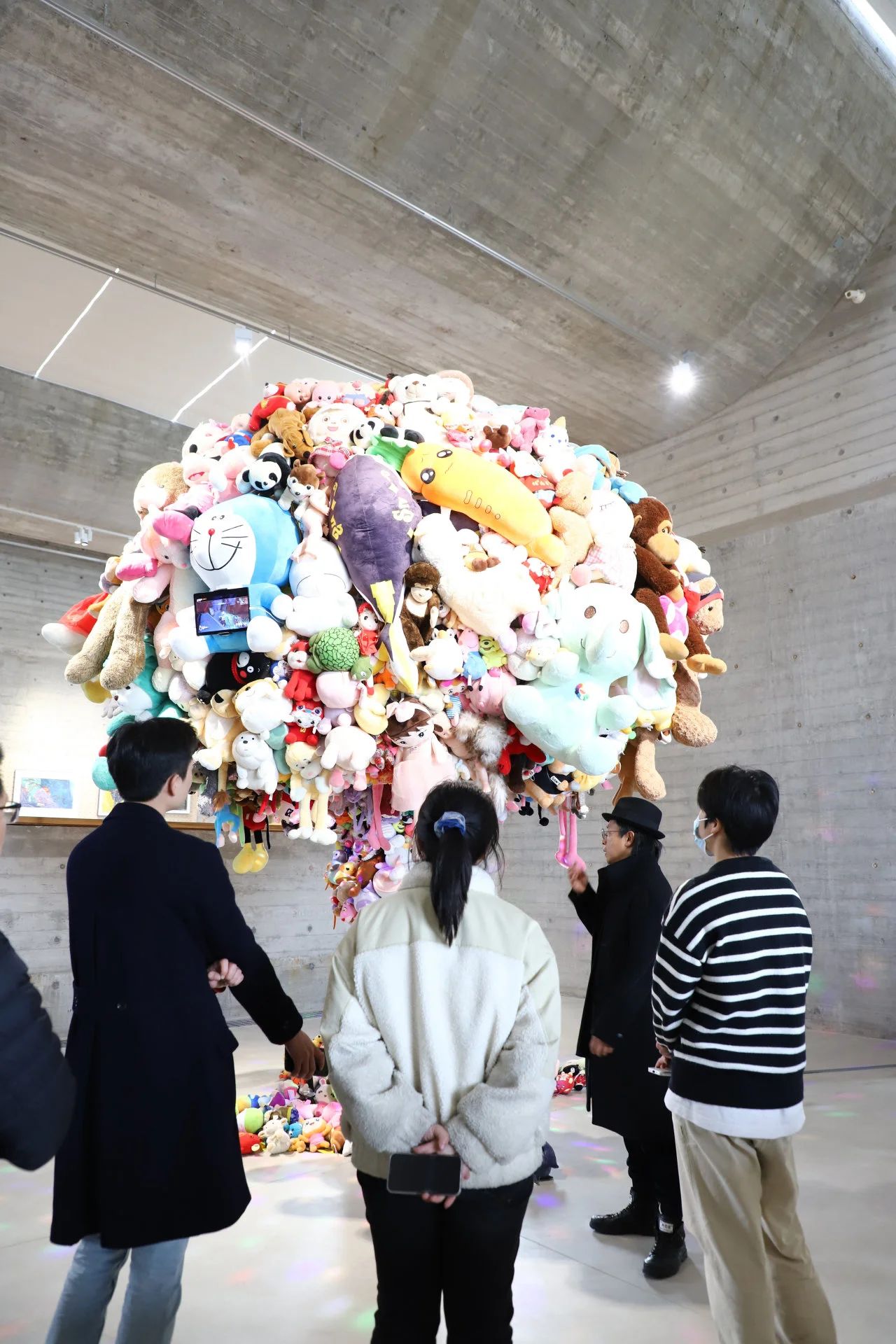 首展當(dāng)天,藝術(shù)家吳梁焰為在場的觀眾及工作人員做了一場專場導(dǎo)覽。導(dǎo)覽過程中,藝術(shù)家吳梁焰給我們分享了他的藝術(shù)靈感源泉,以及他通過藝術(shù)作品想傳達(dá)的理念。他表示:自己的父親雖然是教育工作者,但是從小還是以一種放松自由的狀態(tài)度過童年生活,所以他的作品并沒有從自己的視角出發(fā),而是想更貼近大眾的童年視角,關(guān)注大家的童年。