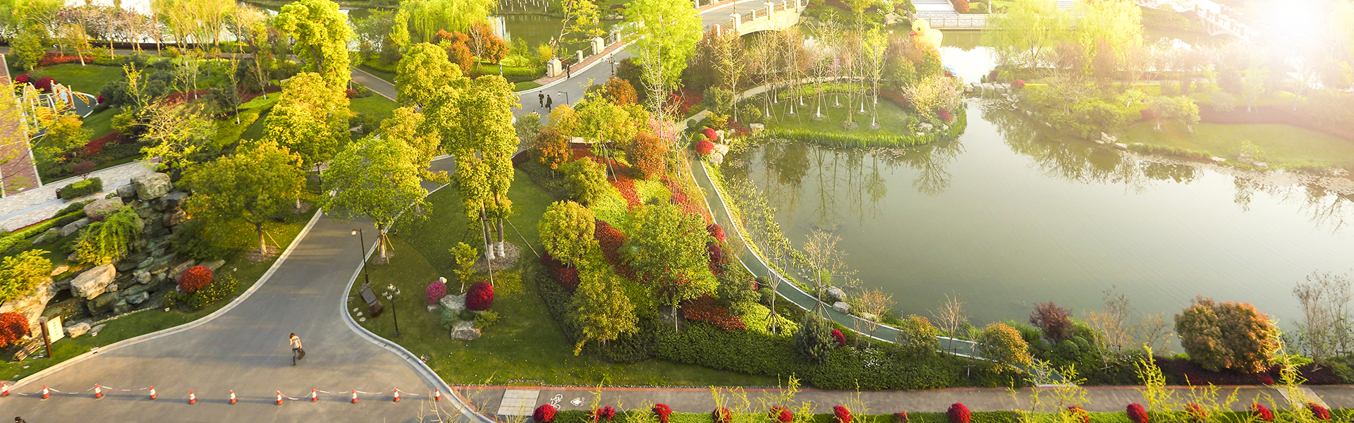 項(xiàng)目依地造景,南低北高,園區(qū)規(guī)劃以“自然,野趣,生態(tài)”為設(shè)計(jì)原則,精心打造逾60000㎡的濱水濕地景觀帶以及25000㎡生態(tài)果林。