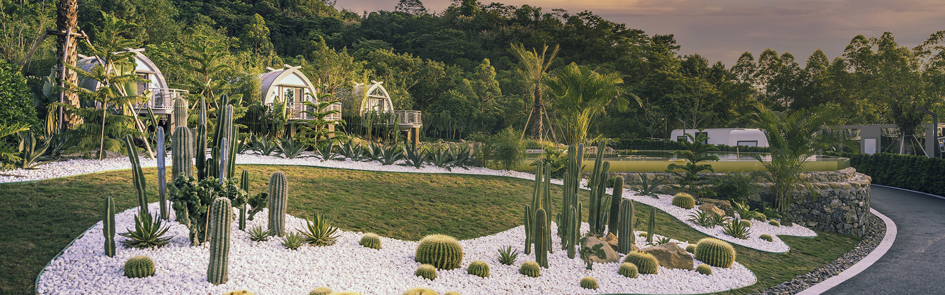 項(xiàng)目共分三期建設(shè),包含度假酒店、觀光農(nóng)業(yè)、森林研學(xué)、自然教育基地、叢林溯溪、環(huán)湖馬道、螢火城堡等功能。度假村以“?然、環(huán)保、科普”為主題,帶來全?位沉浸式生態(tài)度假?式體驗(yàn)。