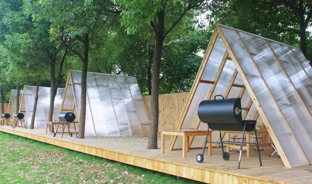 金字塔型的小單間,配上便捷的燒烤爐——自由田野樂園里的解憂木屋,正式上線咯。