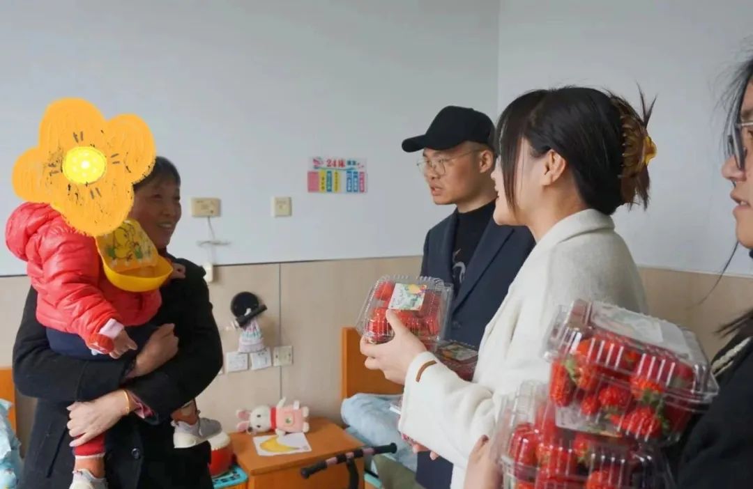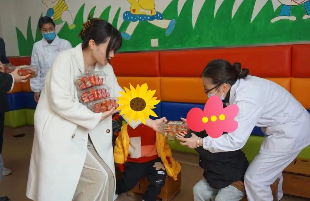我們帶著100余份新鮮采摘的生態(tài)草莓來到新城街道社區(qū)衛(wèi)生服務(wù)中心,看望并慰問在院康復(fù)的青少年腦癱患兒。在符院長和街道相關(guān)人員的帶領(lǐng)下,分別來到三樓康復(fù)部和四樓住院部。在康復(fù)部,參觀了解腦癱兒童康復(fù)的全過程,同時熱情地向醫(yī)護(hù)人員詢問孩子的康復(fù)成效,可喜得是經(jīng)過語言、運動等多方面的康復(fù)訓(xùn)練,大部分小朋友都能恢復(fù)正常的學(xué)習(xí)生活。