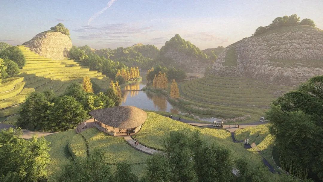 農(nóng)場以生態(tài)農(nóng)業(yè)種植區(qū)為核心,規(guī)劃有游客接待中心、森林學(xué)校、會議中心、茶主題餐廳、茶田酒店、幽谷木屋、小火車等業(yè)態(tài)。