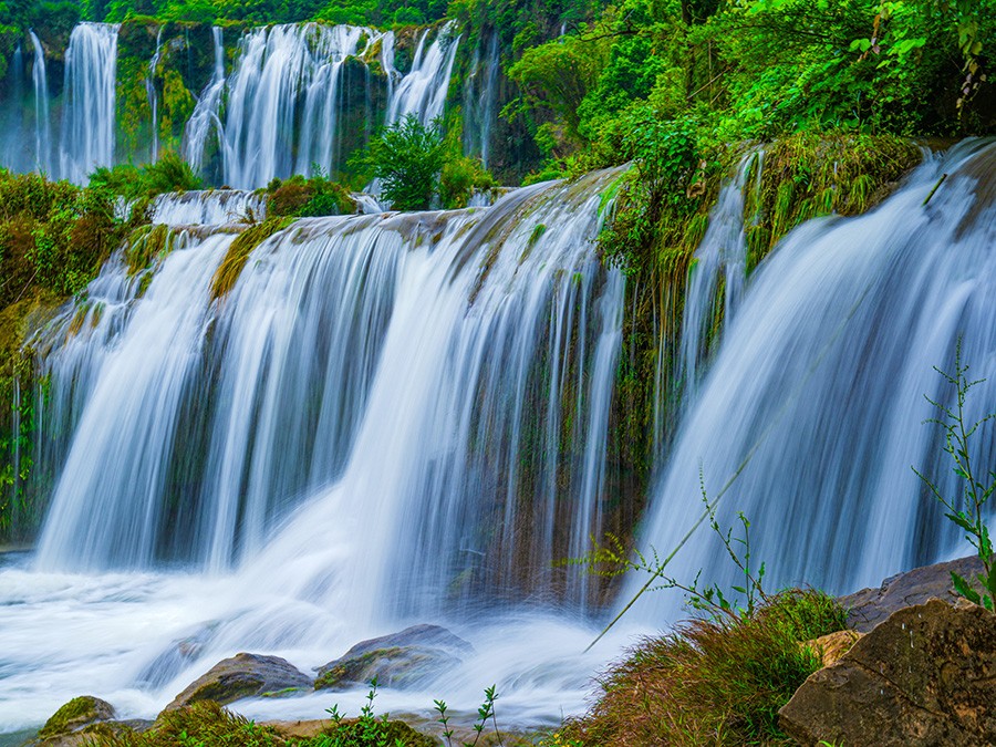 由于特殊的地質(zhì)構(gòu)造和水流的千年侵蝕,在此形成了十級(jí)高低寬窄不等,形態(tài)各異的瀑布群。