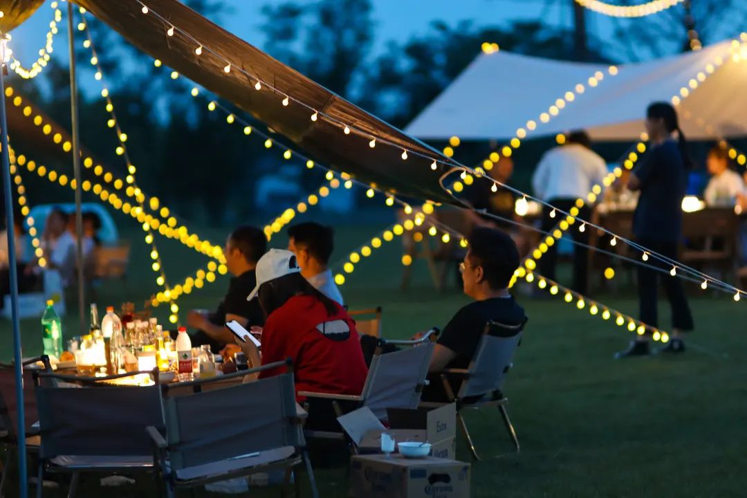 夏夜,褪去了白晝里熾陽烘烤的炙熱,召喚著在空調(diào)房里泡了一天的身體,接受自然的照拂。從湖畔吹來的風會喚醒每一個毛孔,讓身心得以放松舒展,輕盈自在。夜幕降臨的星野營地上,草坪夏夜的快樂在銀杏林旁開啟,晚風、星空、燒烤、音樂、煙火......人們可以在如水的夜晚里拋掉一切擾人瑣事,專注于炭火上烤物的滋味,敞開心扉,把酒言歡,哼著曲調(diào)跟著音樂節(jié)拍搖擺,等綻放的煙花把歡樂氣氛推至高潮,沉醉一場美妙無比的微醺夏夜時光。