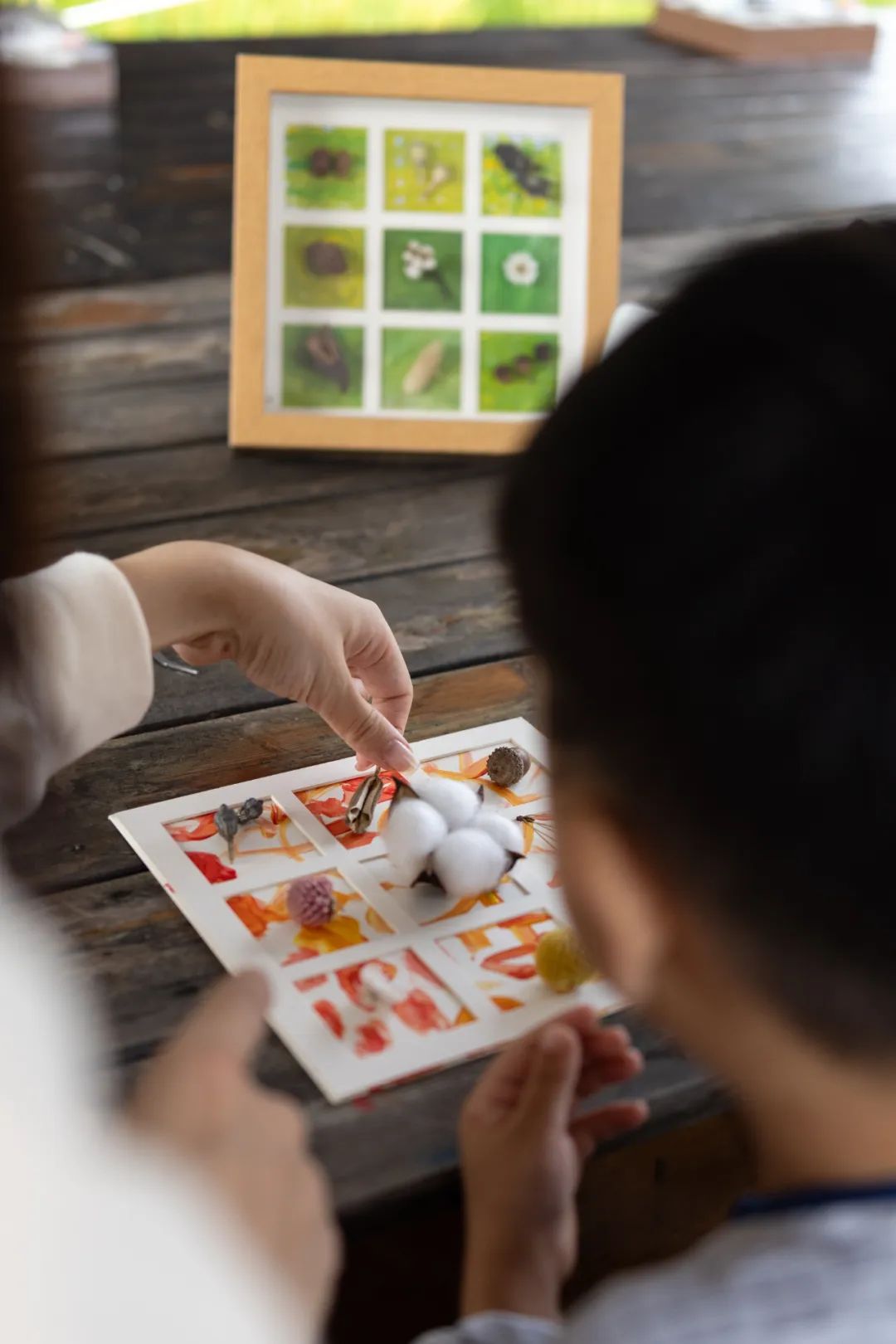 田野里,天幕下,翻開大自然的調色盤,拼上一個屬于自然的植物相框手作——槭樹的紅、銀杏的黃、蒼耳的褐……通通都能裝進名為秋天的相框里。